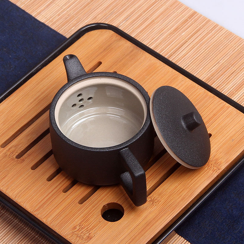 为您提供商品陶瓷1茶壶2杯干泡茶盘便携式 粗陶茶具 茶具简约小套装 复古黑陶日式的详细介绍,