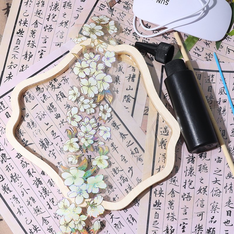 非遗古风沙龙母亲节 水扇手工DIY材料包国风水波纹复古扇子套装