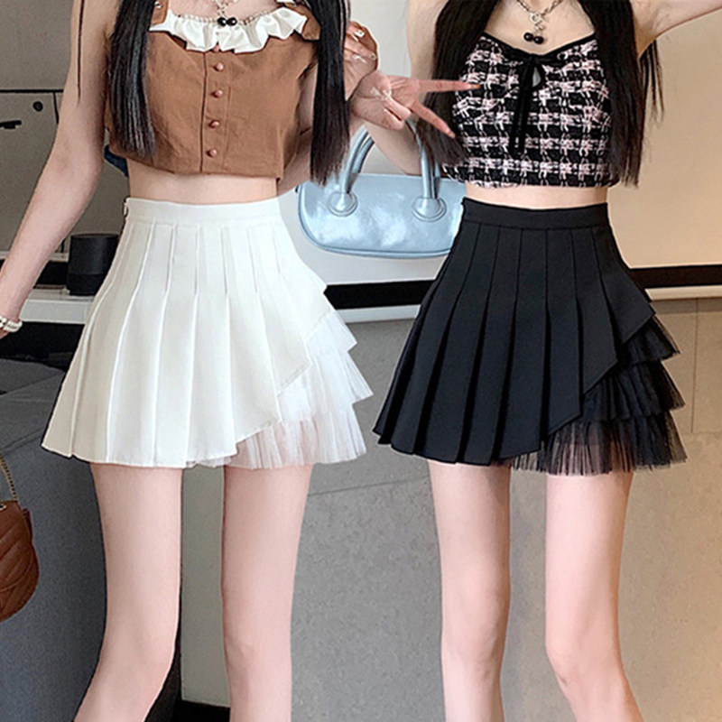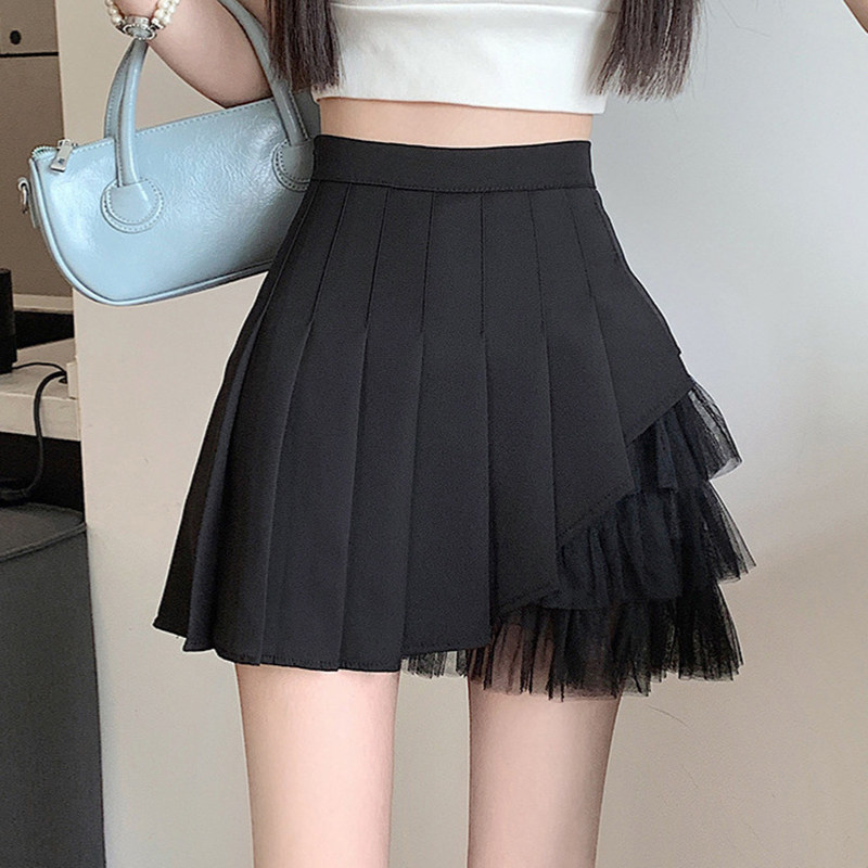 小个子短裙时尚 高腰显瘦a字半身裙 2024新款 黑色网纱百褶裙女夏季