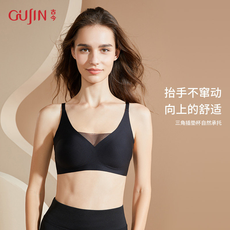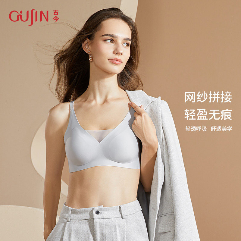 古今网纱拼接无钢圈随心裁内衣高弹可拆卸插垫杯透气文胸0P5019由