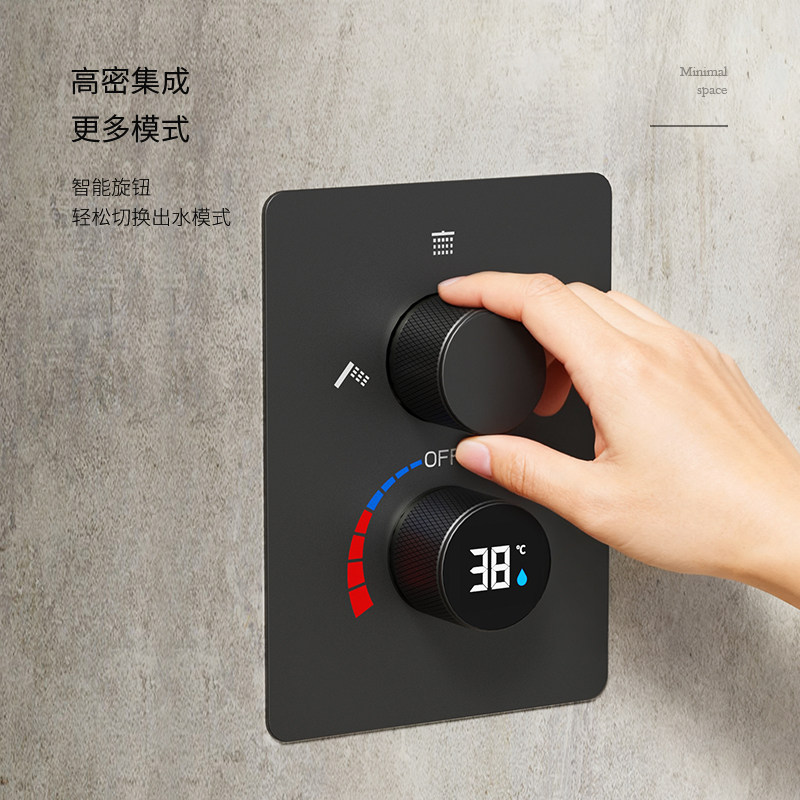 淋浴套装 酒店全铜家用预埋隐藏 花洒数显增压顶喷嵌入式 斯沐汀暗装