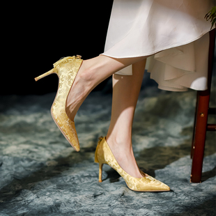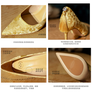 女中式 金色秀禾服婚鞋 锦缀 礼服 子香槟新娘鞋 高跟旗袍鞋 结婚鞋