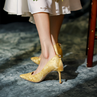 为您提供商品女中式 金色秀禾服婚鞋 锦缀 礼服 子香槟新娘鞋 高跟旗袍鞋 结婚鞋的详细介绍,