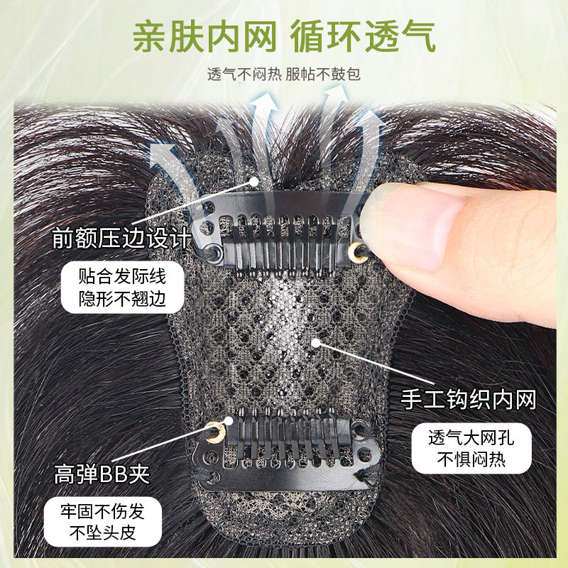 刘海片 高颅顶假发片女增发量蓬松真发遮头顶白发 双递针法式 美禾