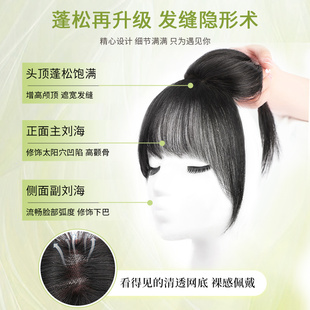 假刘海 刘海假发女片头顶补发真发全真人发高颅顶增发量遮白发法式
