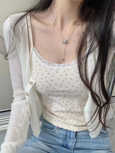 带胸垫文胸一体背心女吊带蕾丝边小碎花内搭外穿白色纯棉夏季 薄款由
