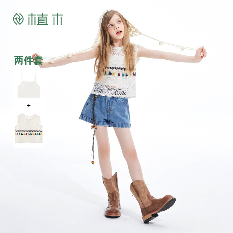 中大童流苏马甲背心两件套儿童背心童装 新款 植木女童背心2026夏季