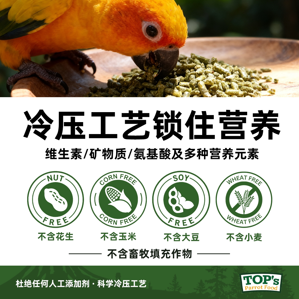 美国Tops鹦鹉滋养丸天然有机冷压合成粮进口鸟粮鸟食迷你颗粒由