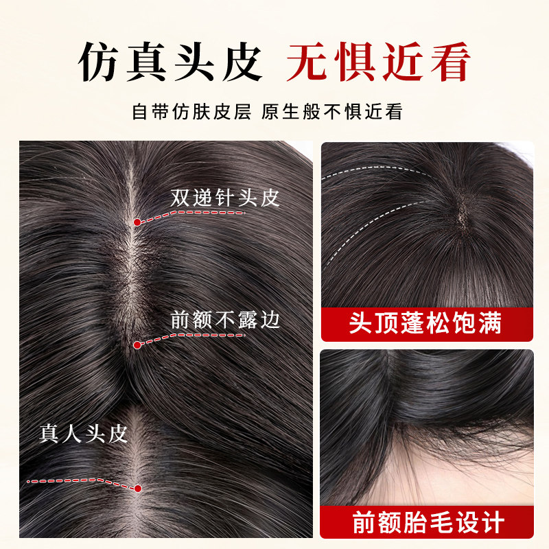 递针假发女片头顶真发蓬松自然遮白发高颅顶增发量轻薄无痕补发片由