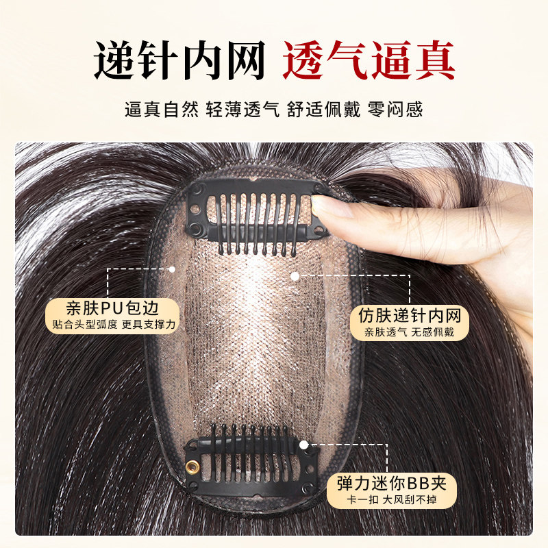递针假发女片头顶真发蓬松自然遮白发高颅顶增发量轻薄无痕补发片