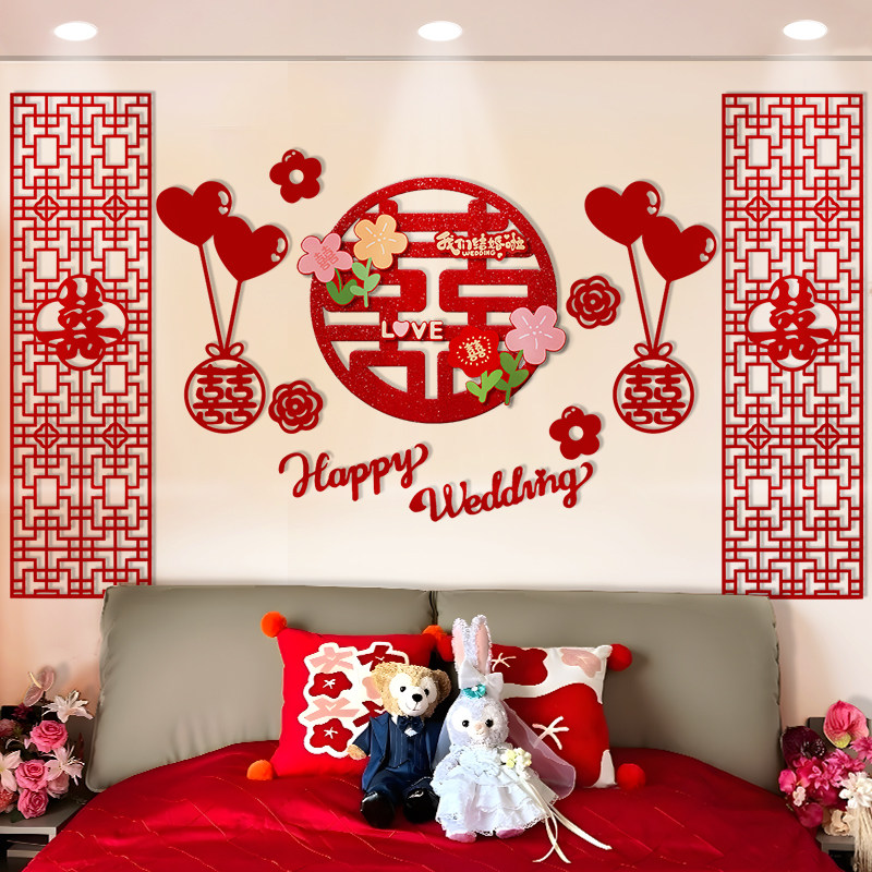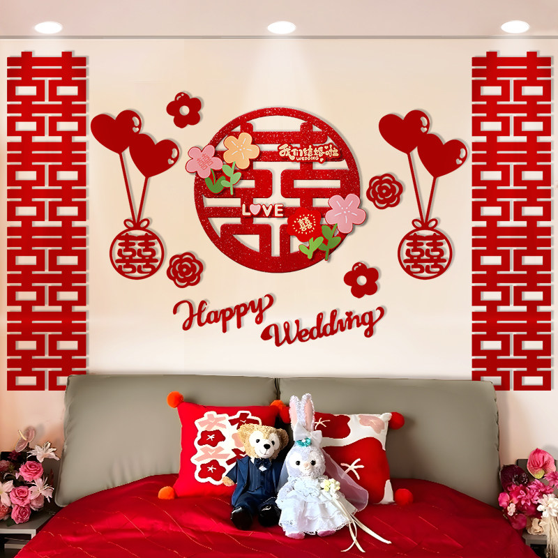 喜字拉花套装 男女方卧室新房结婚用品大全 饰新款 婚房床头背景墙装
