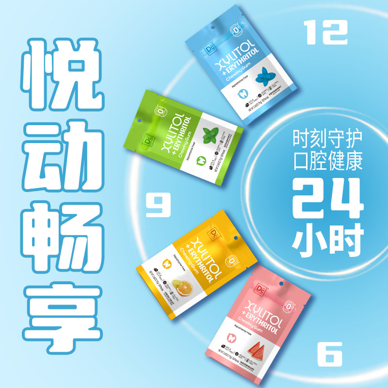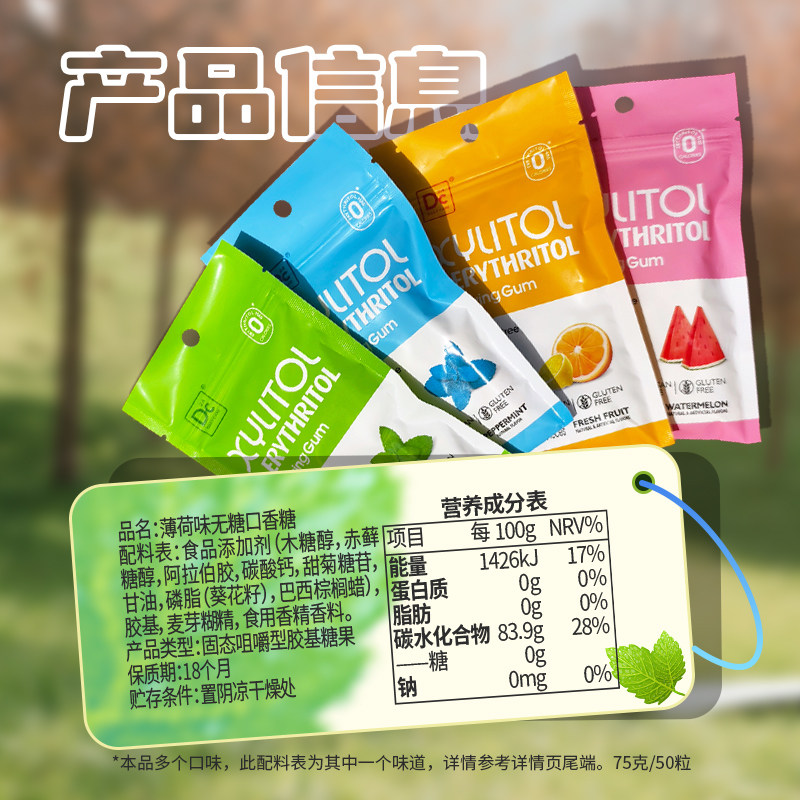 袋赤藓糖醇薄荷味清新香口胶零食 悦醒DC24木糖醇无糖口香糖50粒