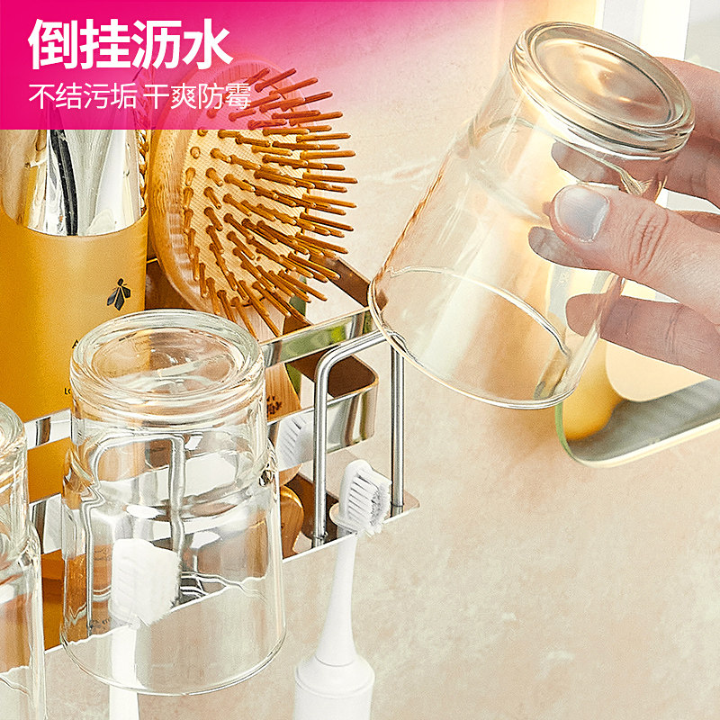 一家四口 不锈钢电动牙刷架子置物架免打孔刷牙杯漱口杯挂架壁挂式由