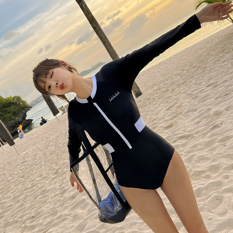 追浪高领新款 专业级防晒冲浪连体速干服潜水服水母衣 泳衣女长袖