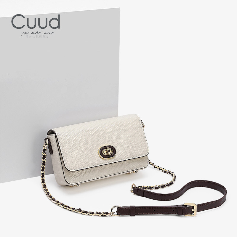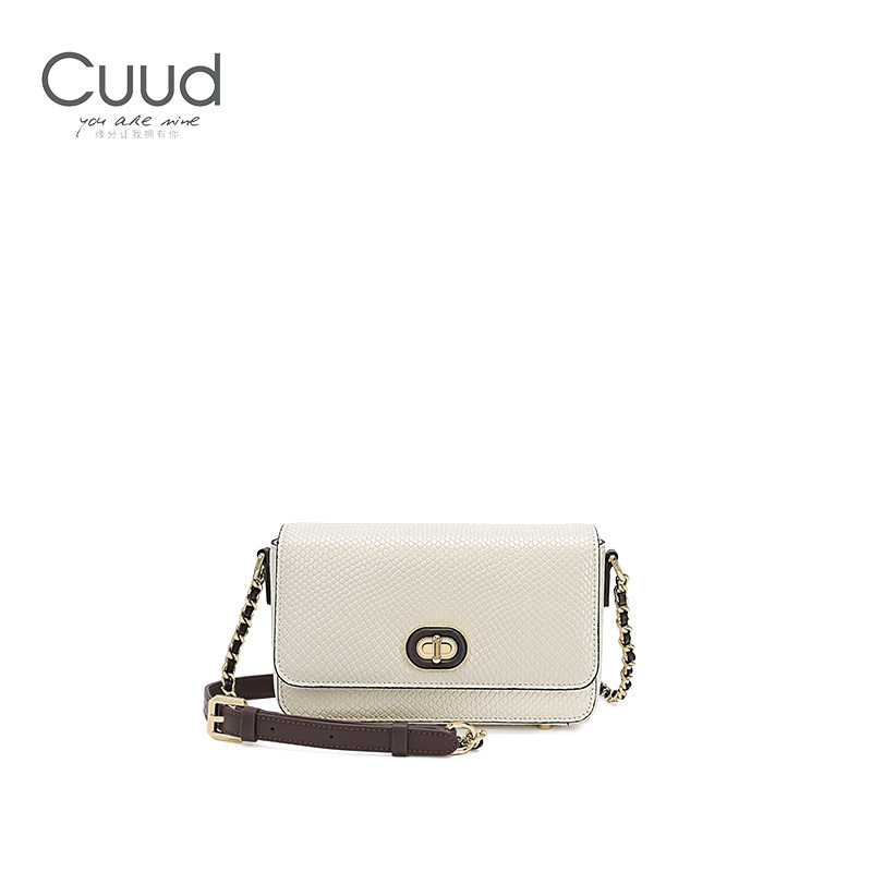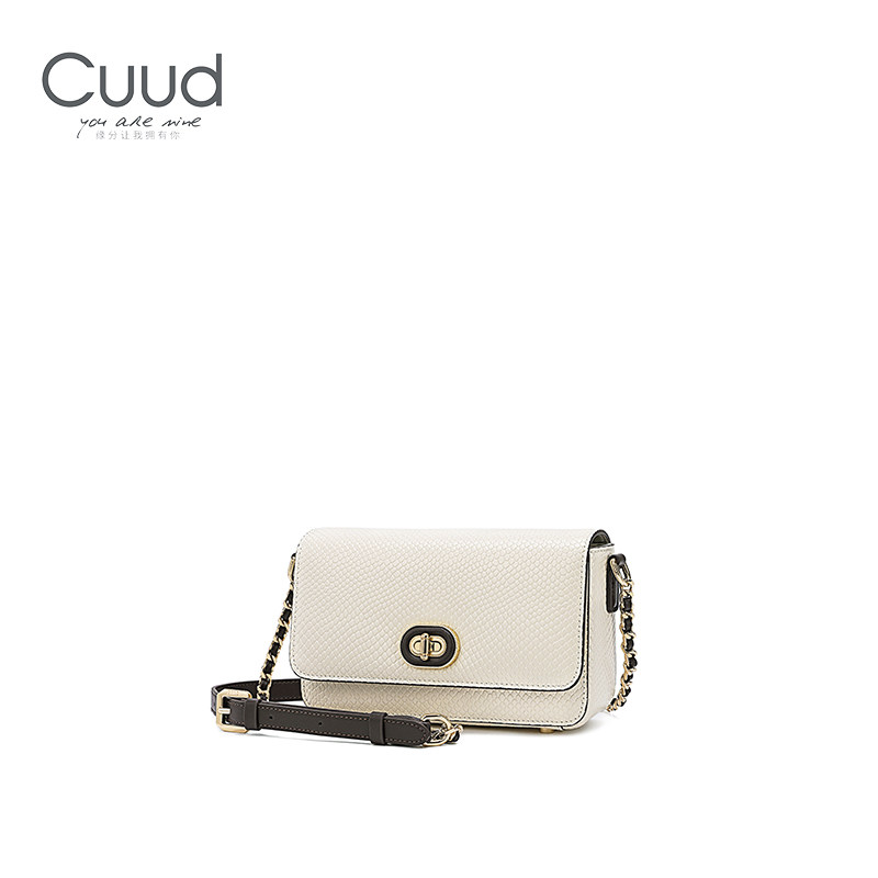 Cuud白色蛇纹包包女高级感2026款 真皮斜挎包小包单肩包 专柜