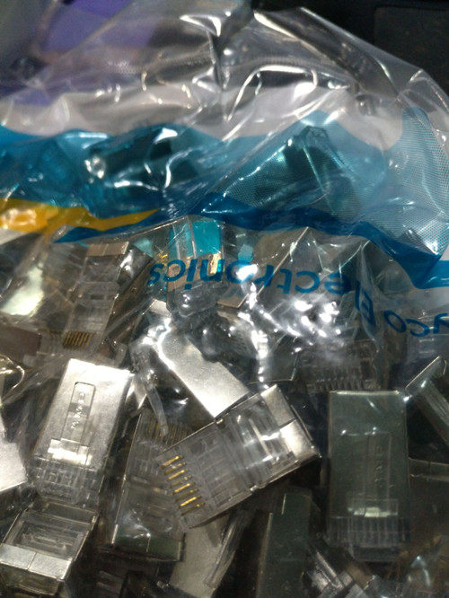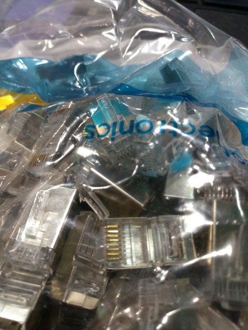 为您提供商品镀金带铁壳屏蔽超五类网线水晶头8芯网络RJ45水晶头 100个 盒装的详细介绍,