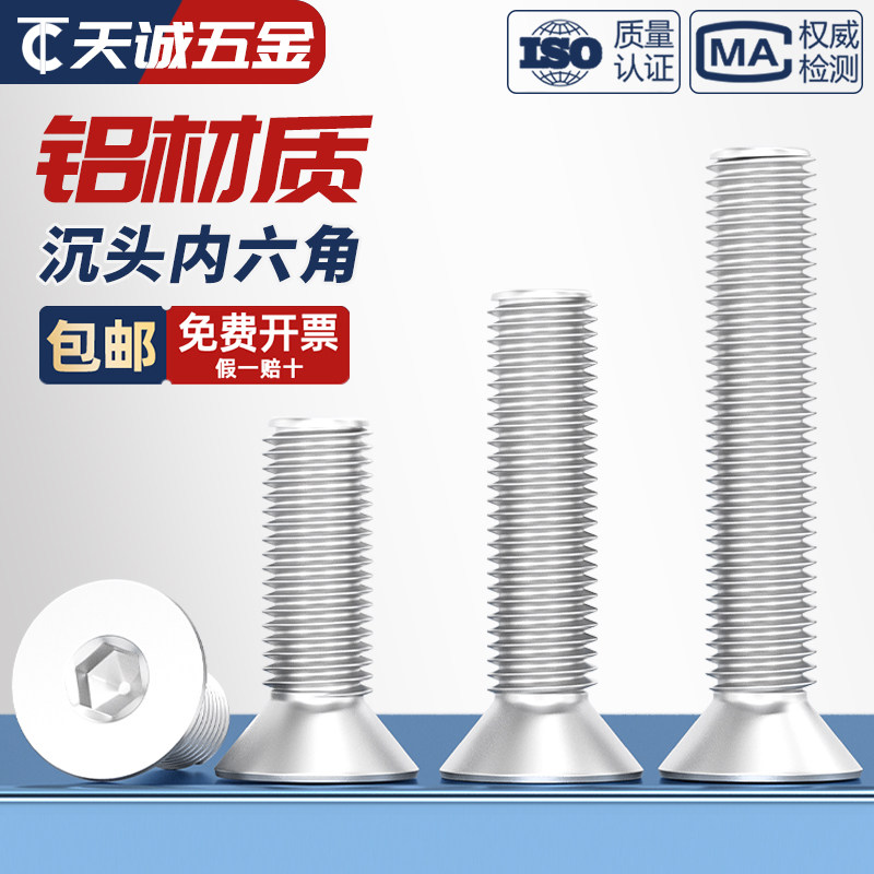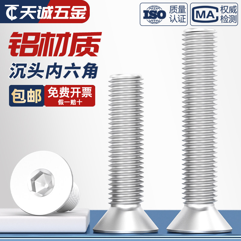 6061铝合金沉头内六角螺丝铝型材平头螺栓螺钉铝制螺杆M3M4M5M6mm由