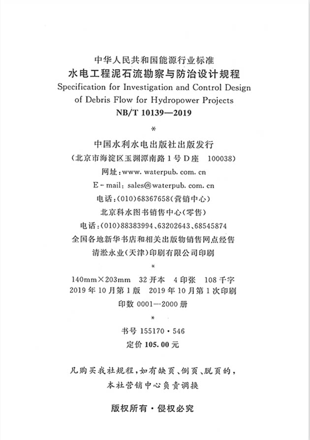 为您提供商品泥石流勘察 防治设计 水电工程泥石流勘察与防治设计规程 2019 10139的详细介绍,