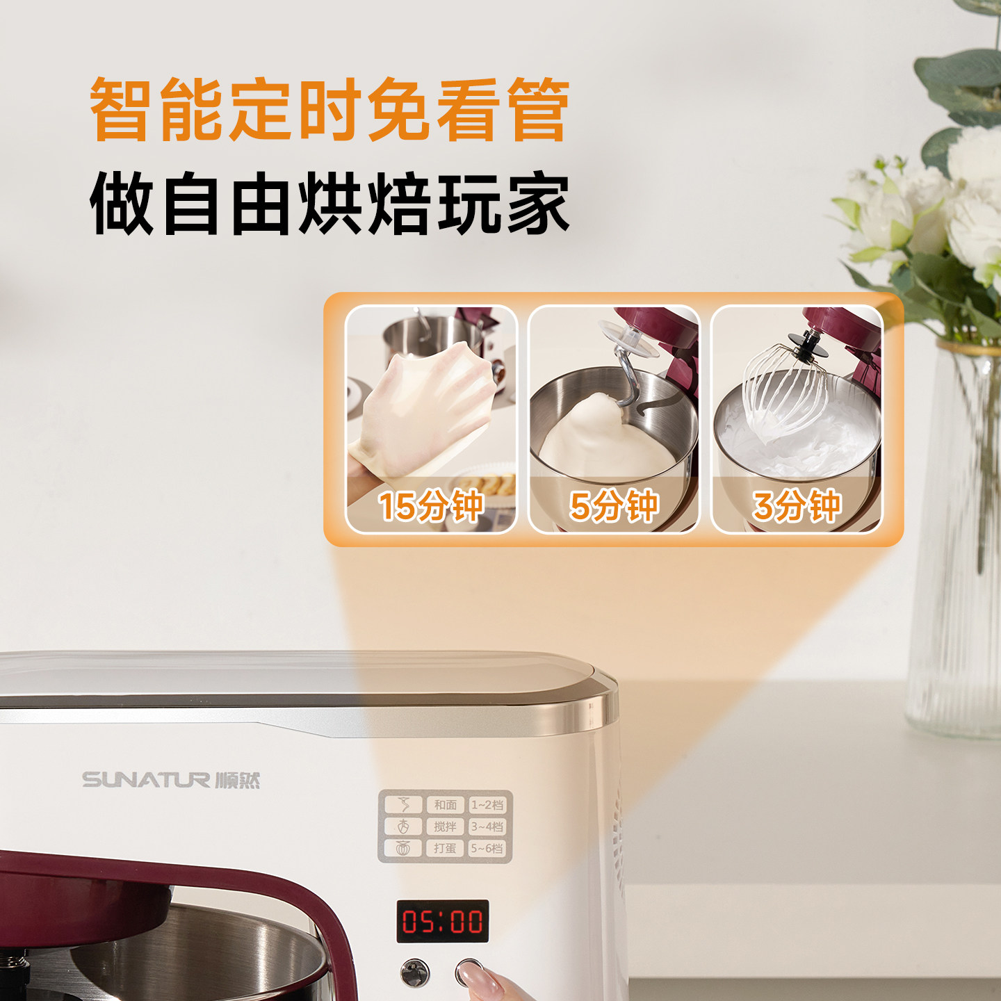 8升顺然3008厨师机家用商用全自动发酵一体揉面和面机 国补15%
