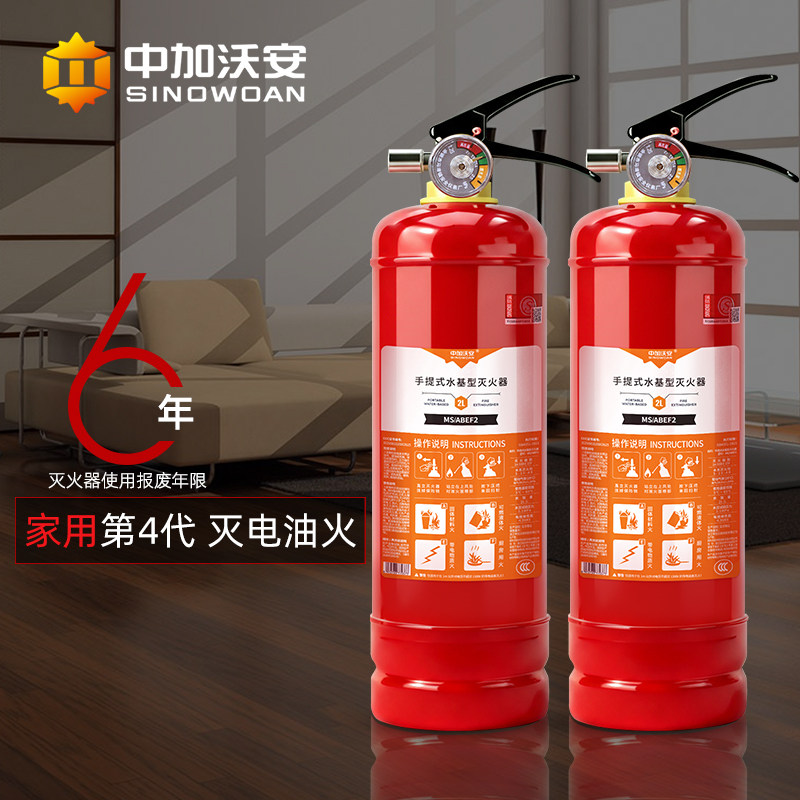厨房新型 第四代水基灭火器家用2公斤水剂型消防认证器材家庭套装