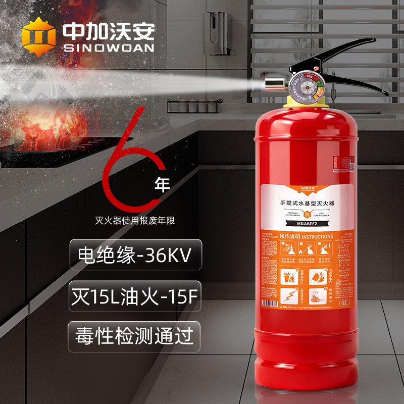 厨房新型 第四代水基灭火器家用2公斤水剂型消防认证器材家庭套装由