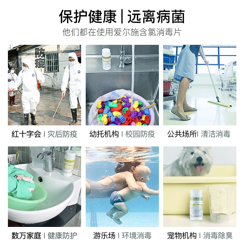 为您提供商品整箱杀菌消毒办公幼儿园机构工厂消毒液 爱尔施含氯消毒片100瓶装的详细介绍,