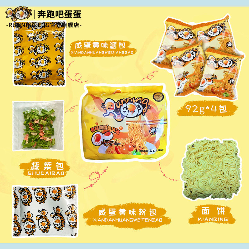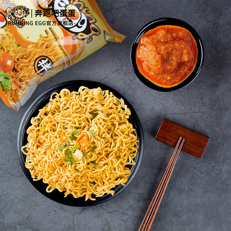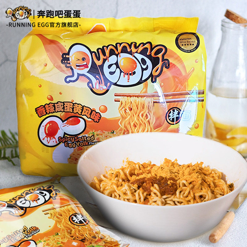 进口奔跑吧蛋蛋香辣咸蛋黄干拌面速食袋装 egg捞面 方便面running由