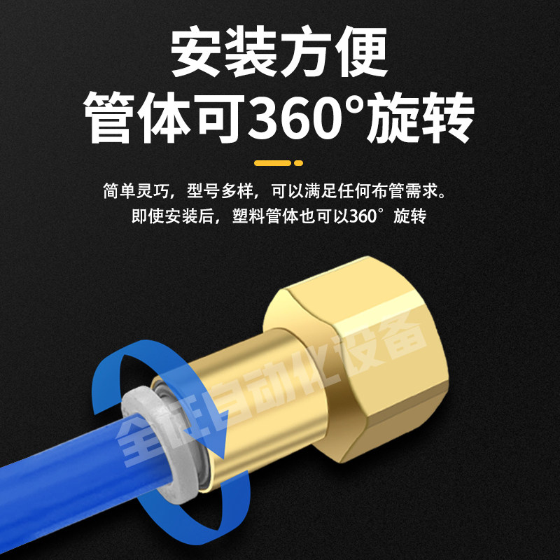 气管快速接头PE三通快插直通PU 12mm变径PG压缩汽管快接PW