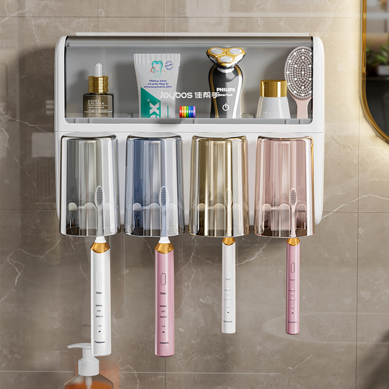 佳帮手牙刷置物架电动牙刷壁挂式 免打孔漱口杯架防尘家庭套装由