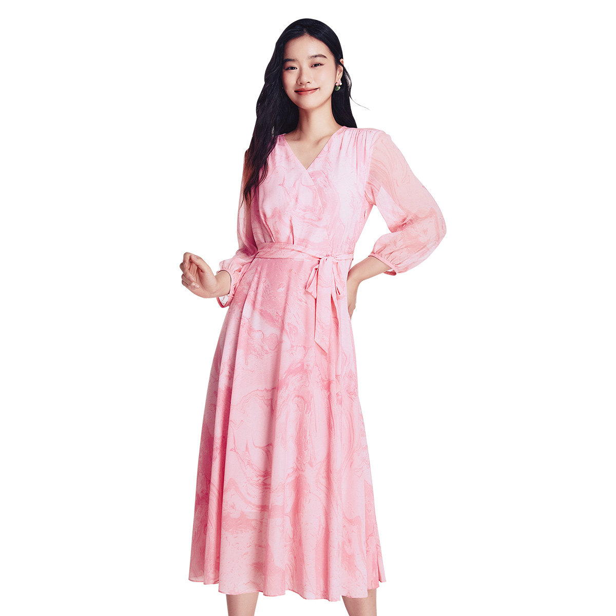 歌蒂诗春专柜新款 8D31L3161 简约气质100%桑蚕丝轻奢高级粉连衣裙由