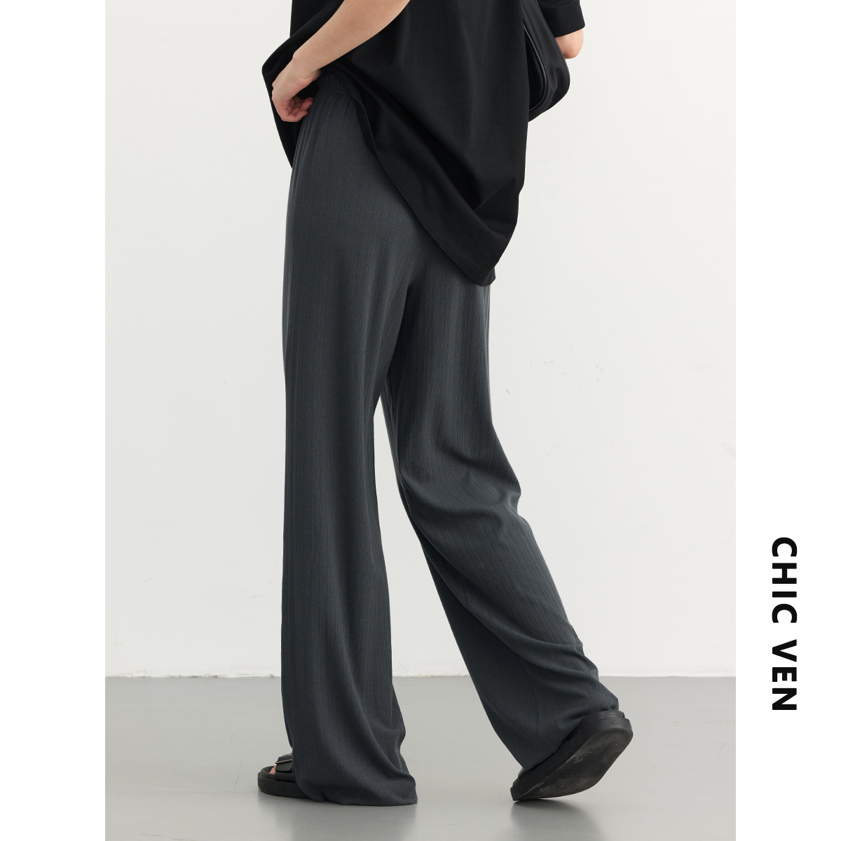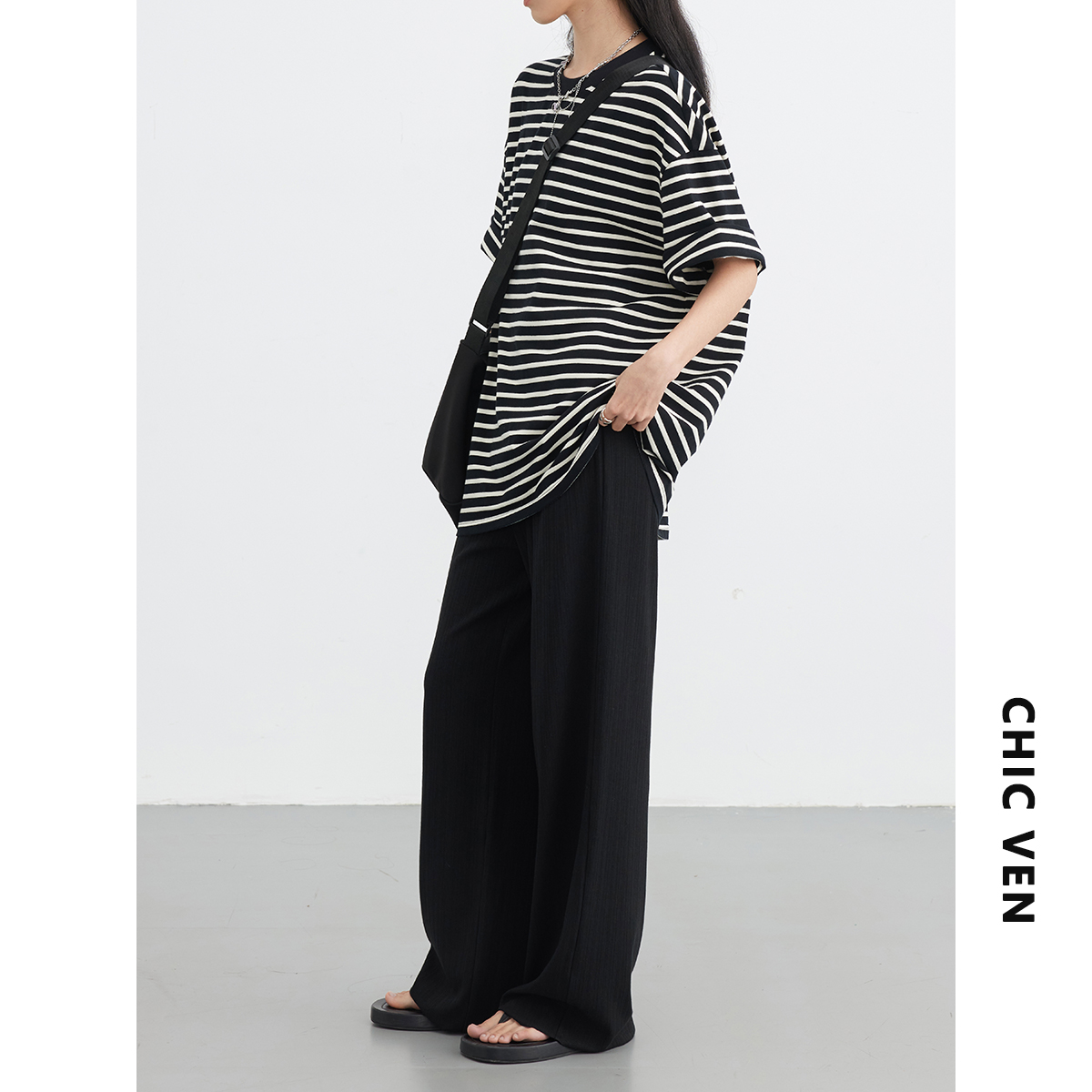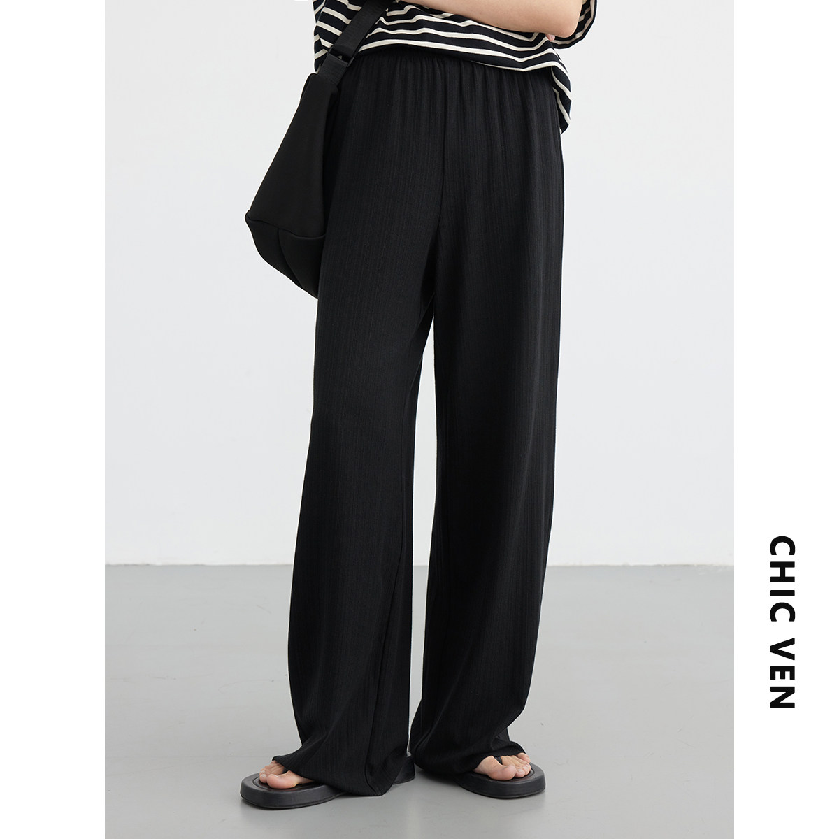 女松紧腰轻薄休闲裤 街头运动垂感阔腿裤 女装 夏季 新款 长裤 CV大码由