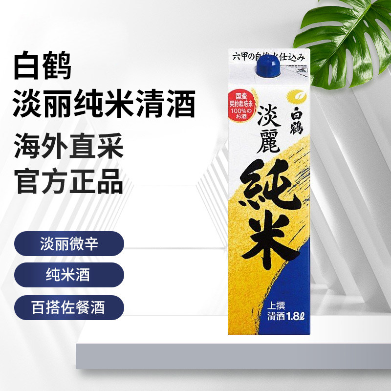 日本白鹤上选淡丽纯米清酒1.8L进口低度发酵日式 米酒日本酒纸盒装由