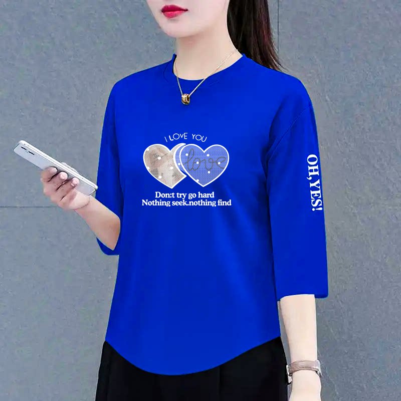 为您提供商品春夏韩版 宽松女士洋气纯棉t恤体恤七分袖 遮肉上衣衫 印花 2025新款的详细介绍,