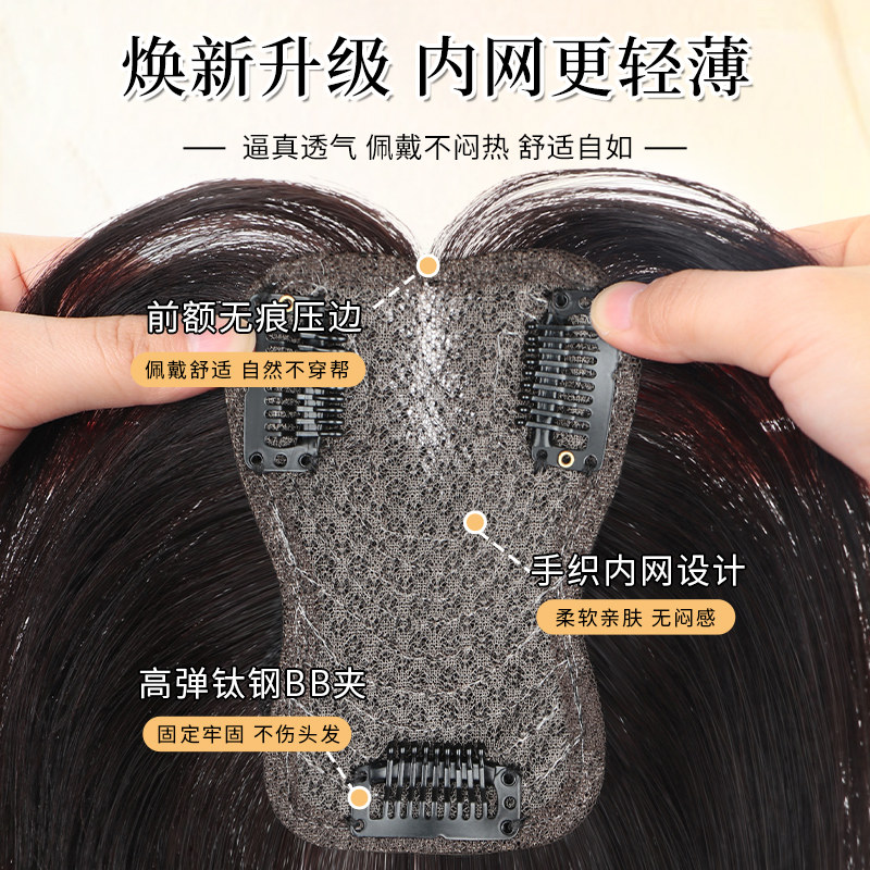 刘海片 高颅顶假发片女增发量蓬松真发遮头顶白发 双递针法式 美禾
