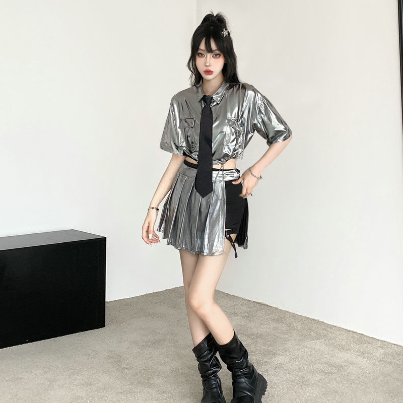 跳舞gogo酷辣妹性感银色上衣 kpop女团爵士舞啦啦操演出服主播服装