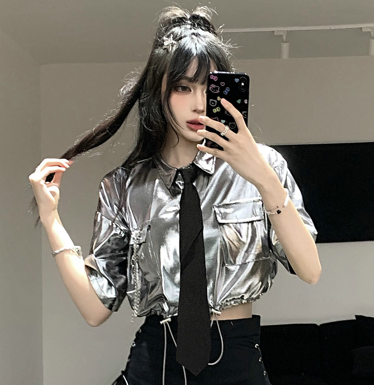 跳舞gogo酷辣妹性感银色上衣 kpop女团爵士舞啦啦操演出服主播服装由