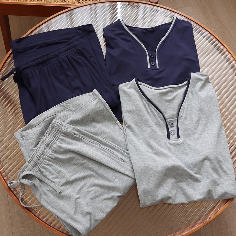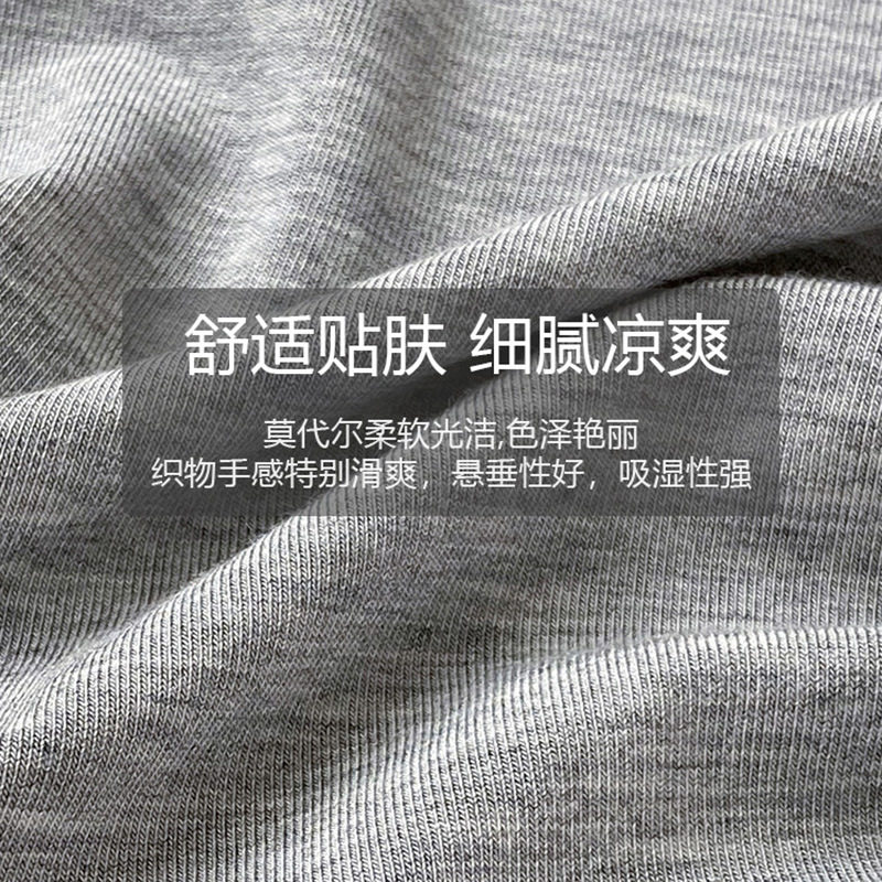 休闲家居服睡衣套装 纵享丝滑 薄款 裤 莫代尔酒杯领灰色男士 短袖由