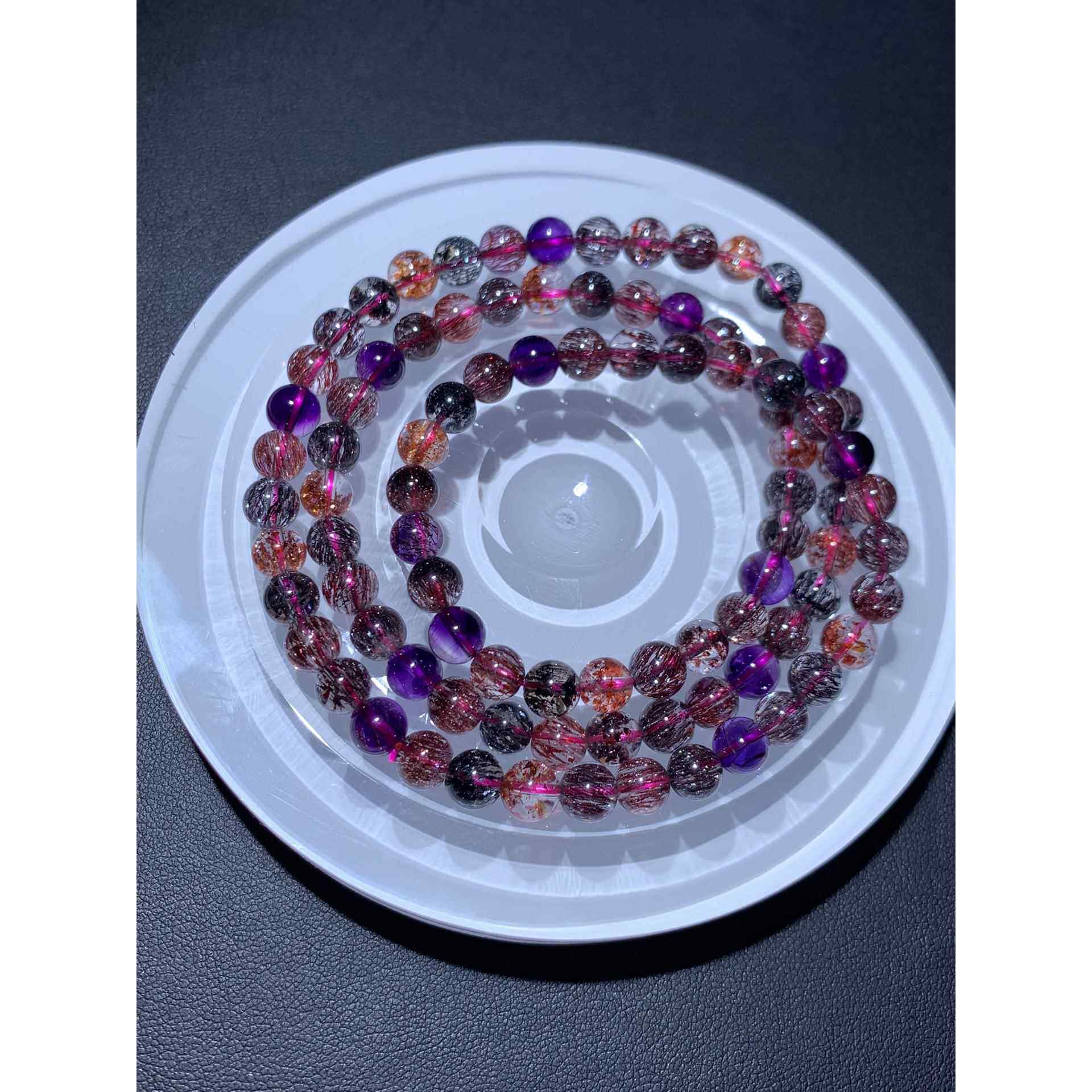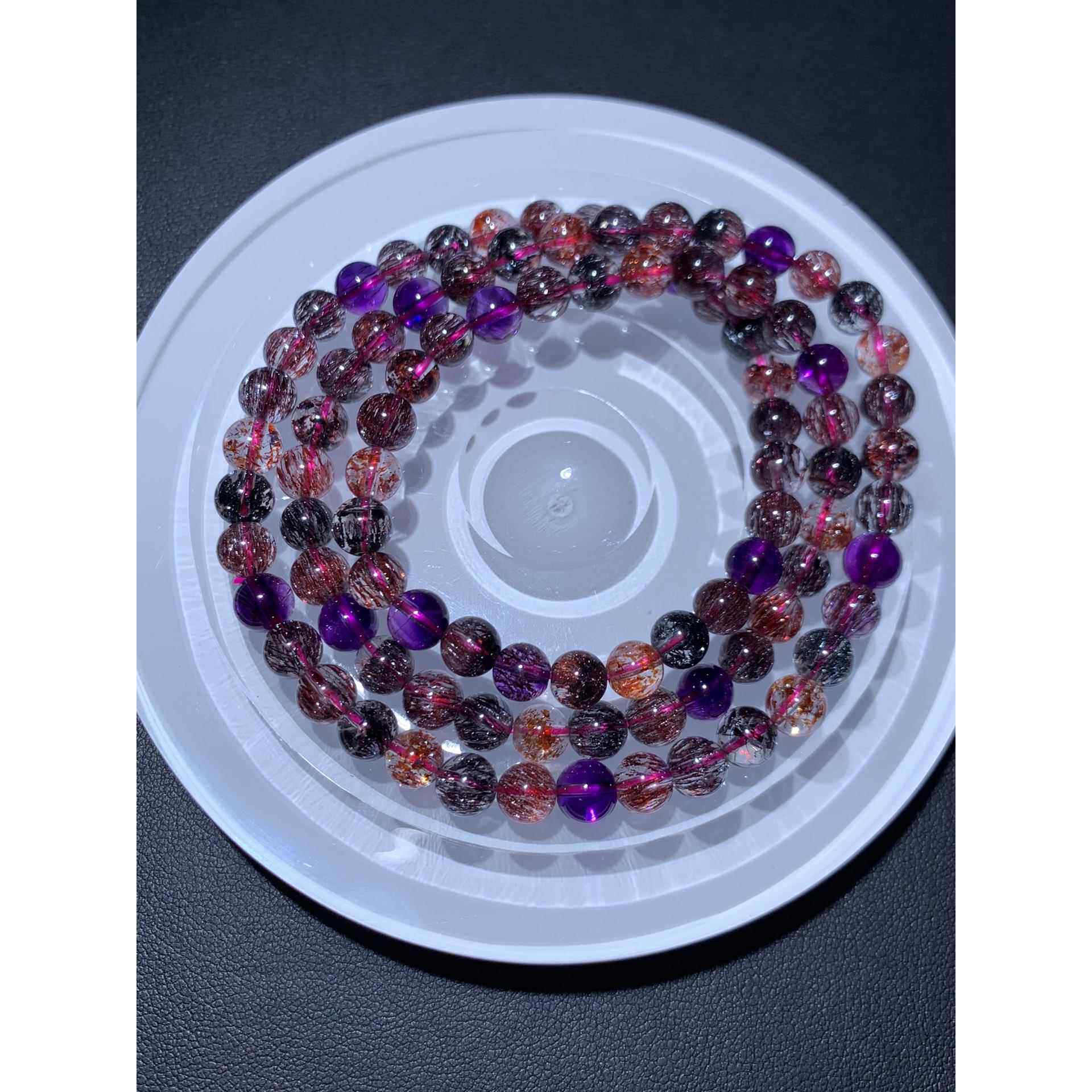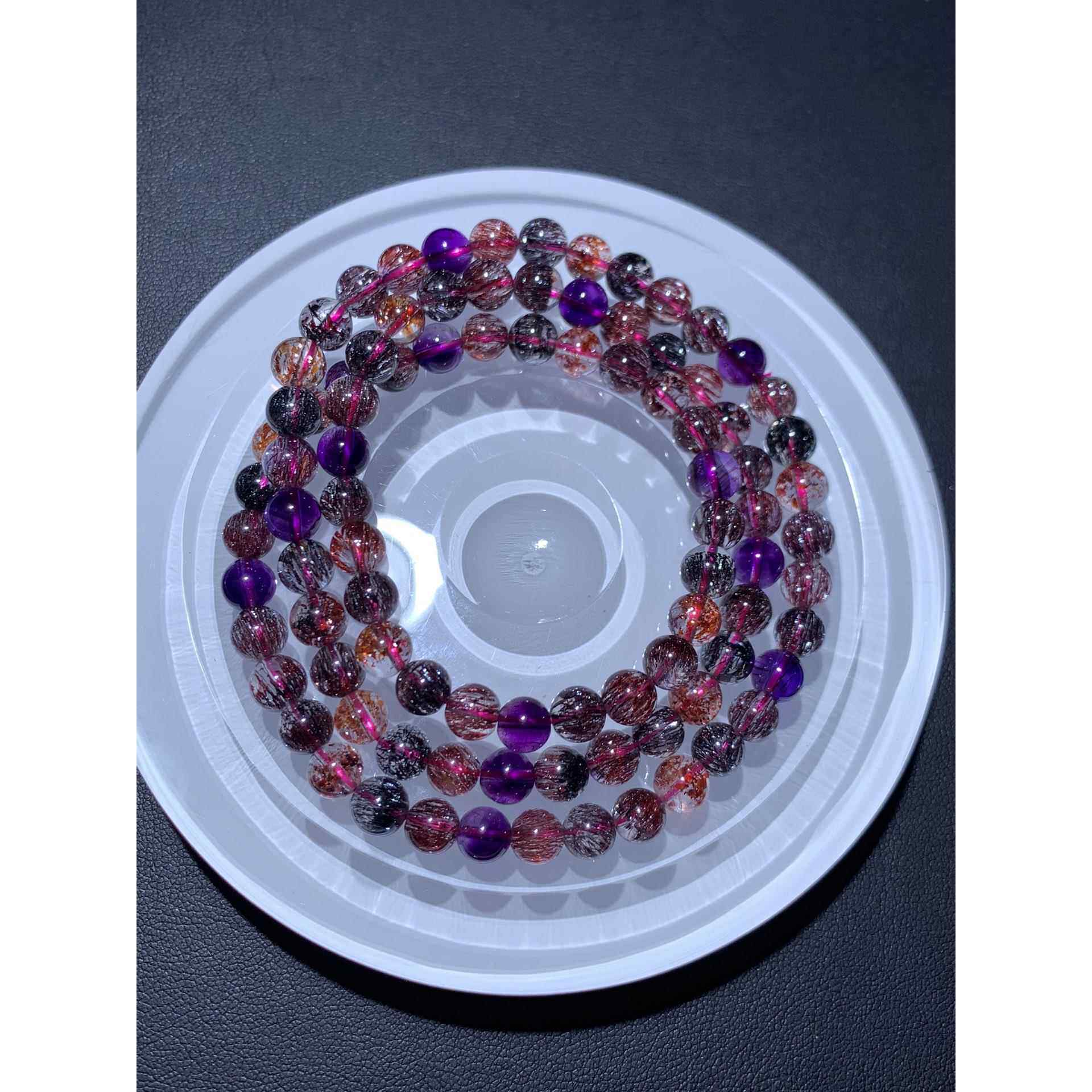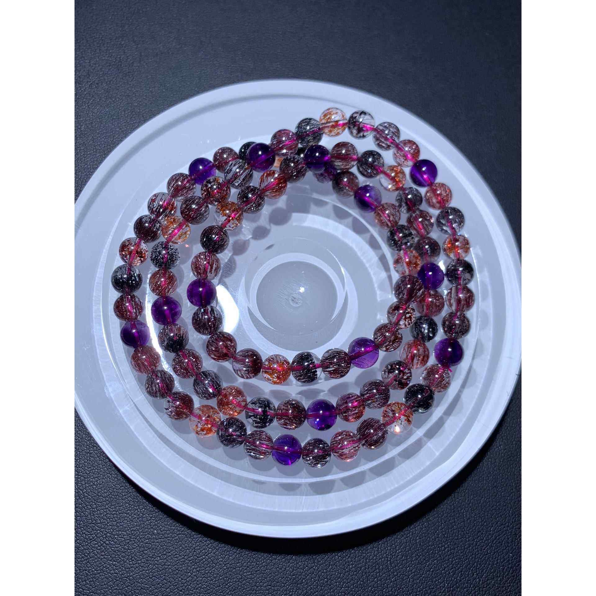 为您提供商品金草莓晶紫发晶黑红发晶圆珠手串珠链规格6.2mm 天然紫发超七手链的详细介绍,