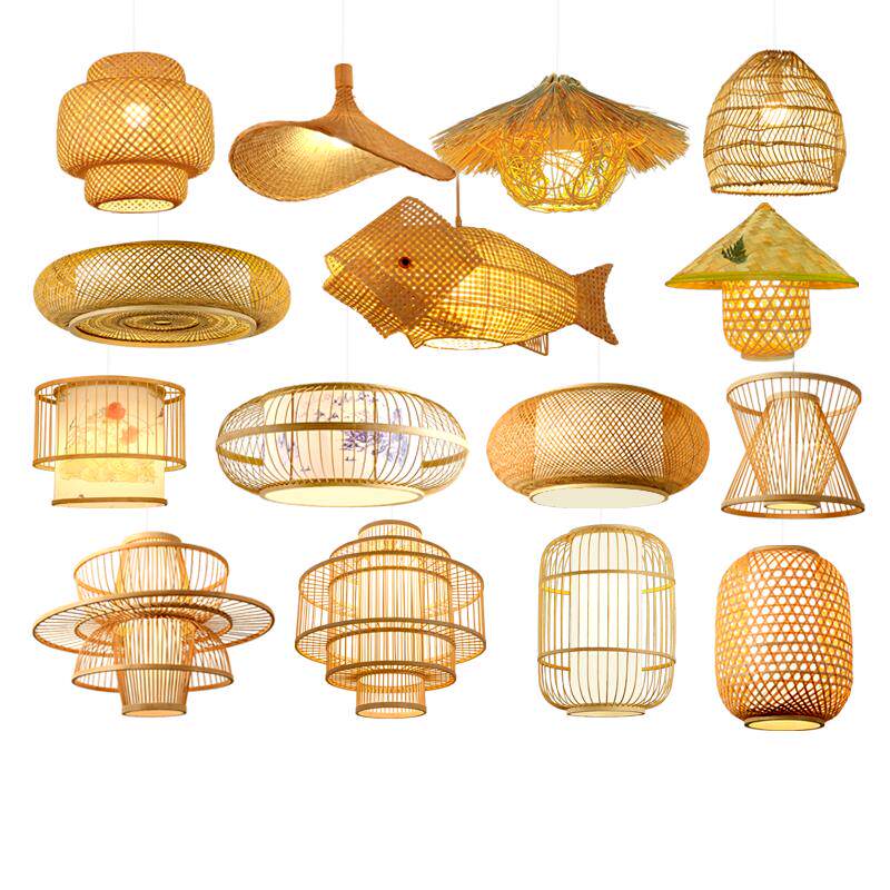 竹编吊灯新中式 竹艺灯笼民宿仿古灯罩 灯饰藤编禅意茶室餐厅灯日式