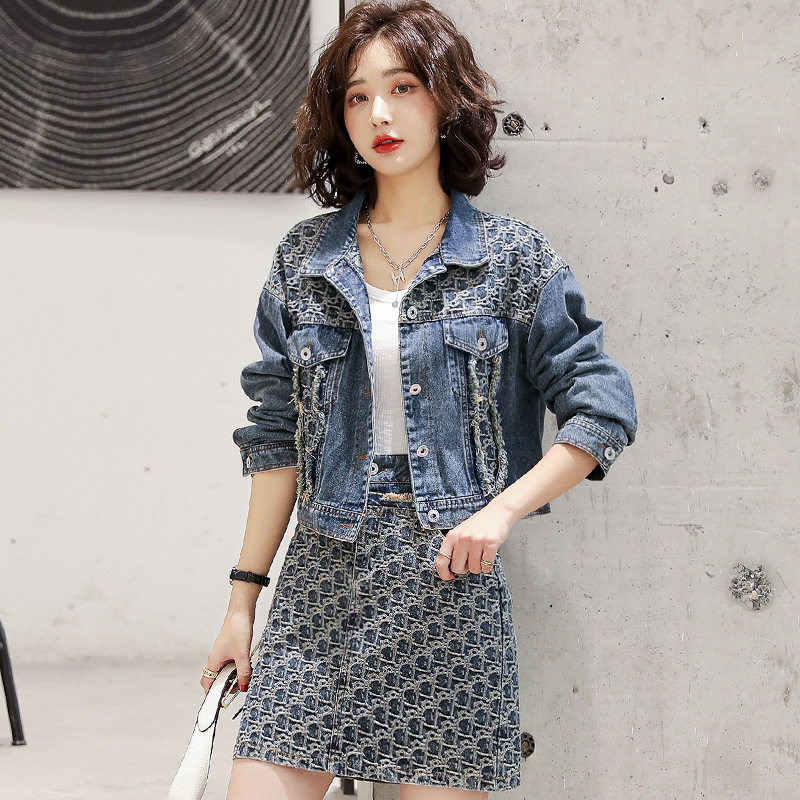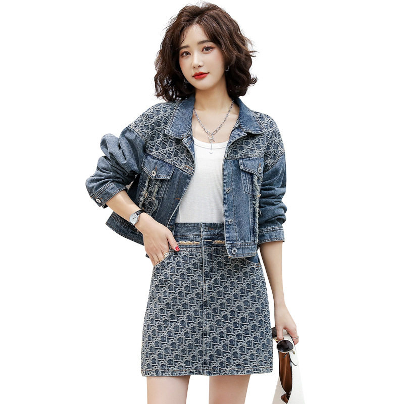 牛仔套装 休闲时尚 裙子洋气早春两件套潮 女装 新款 套装 女2021年春装