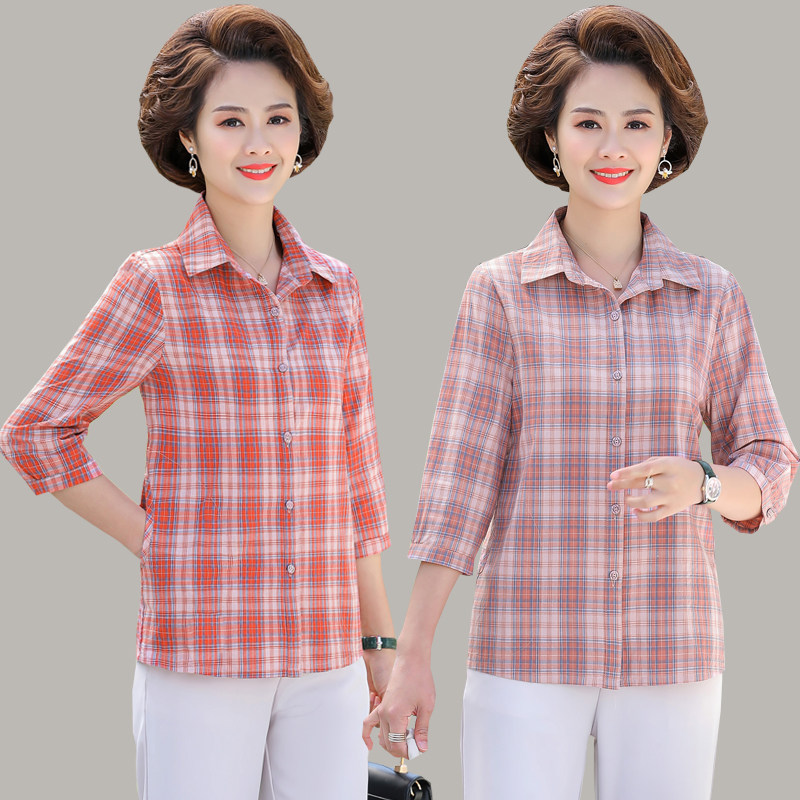 中袖 夏季 高档纯棉衬衫 女2021春夏新款 上衣 衬衣中老年妈妈七分袖