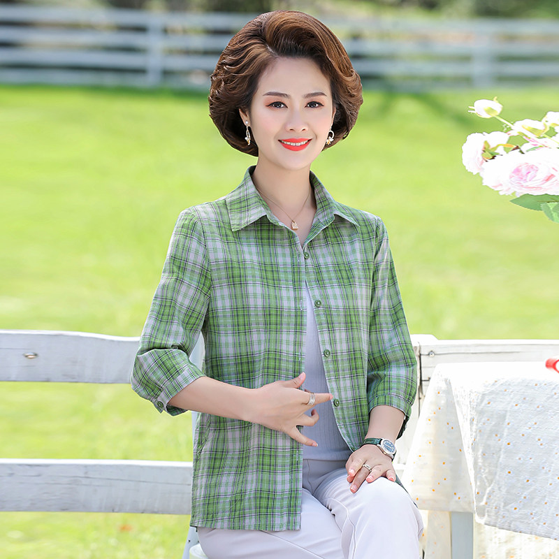 为您提供商品中袖 夏季 高档纯棉衬衫 女2021春夏新款 上衣 衬衣中老年妈妈七分袖的详细介绍,