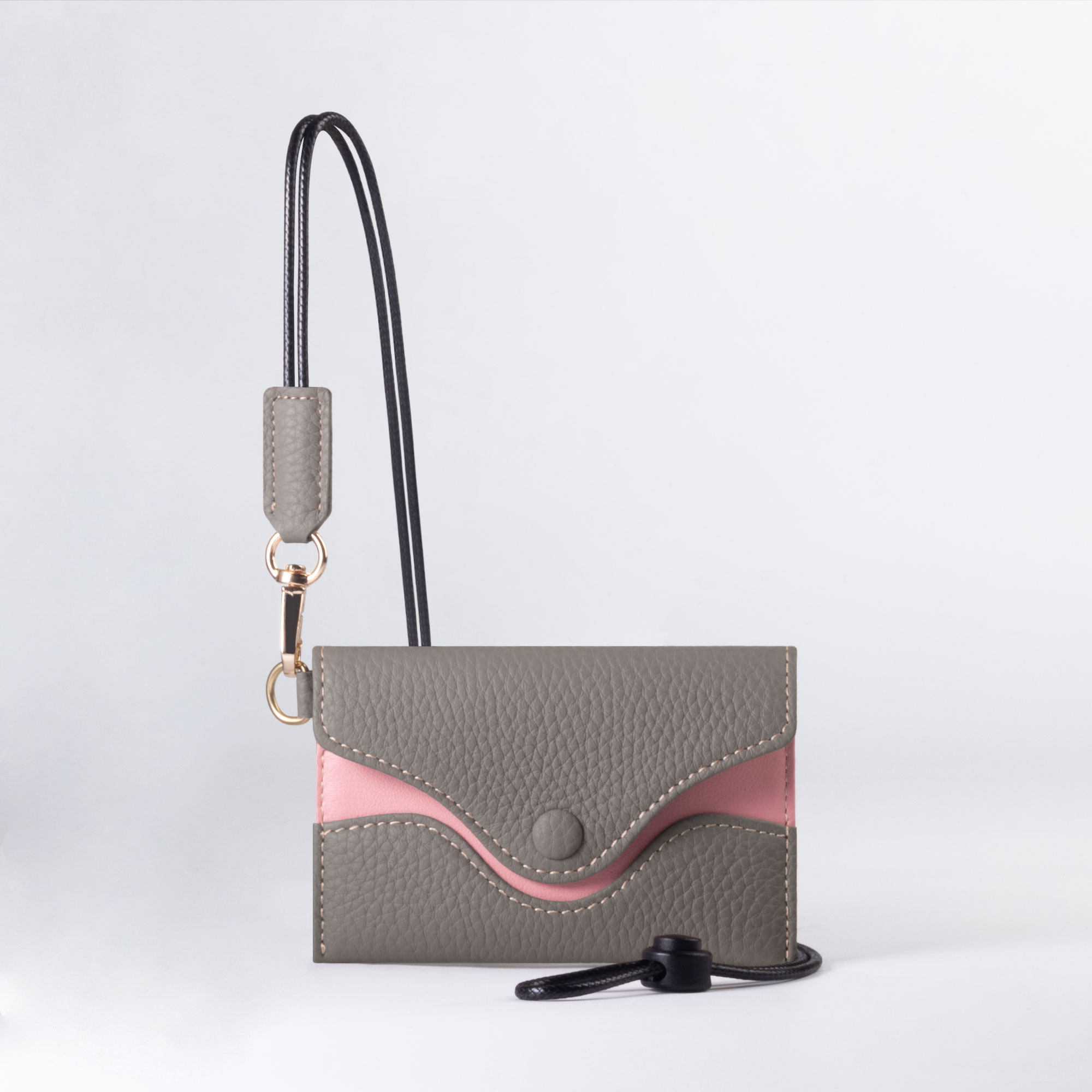HANATORA花虎真皮卡包女士简约便捷挂脖名片夹证件随身收纳小包由