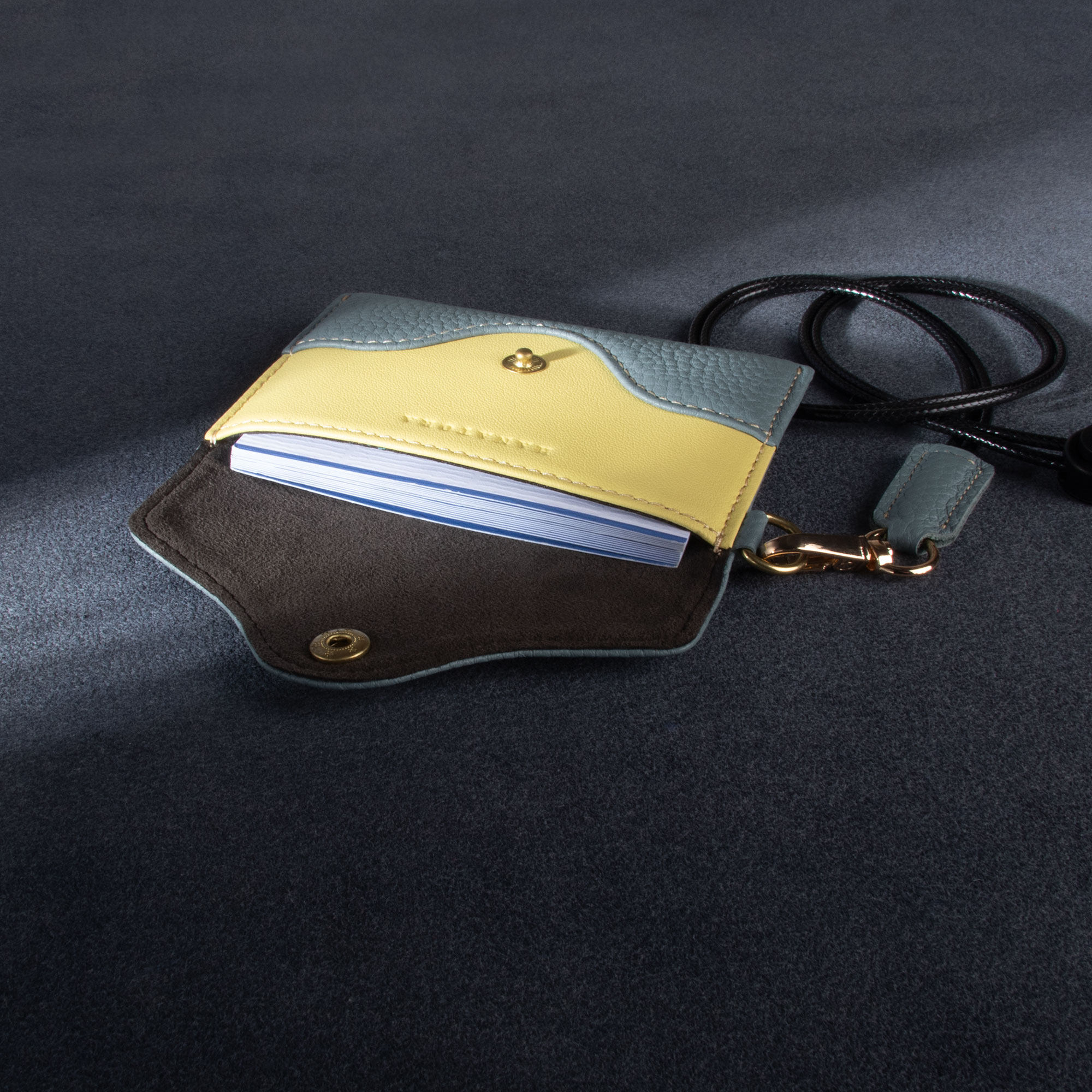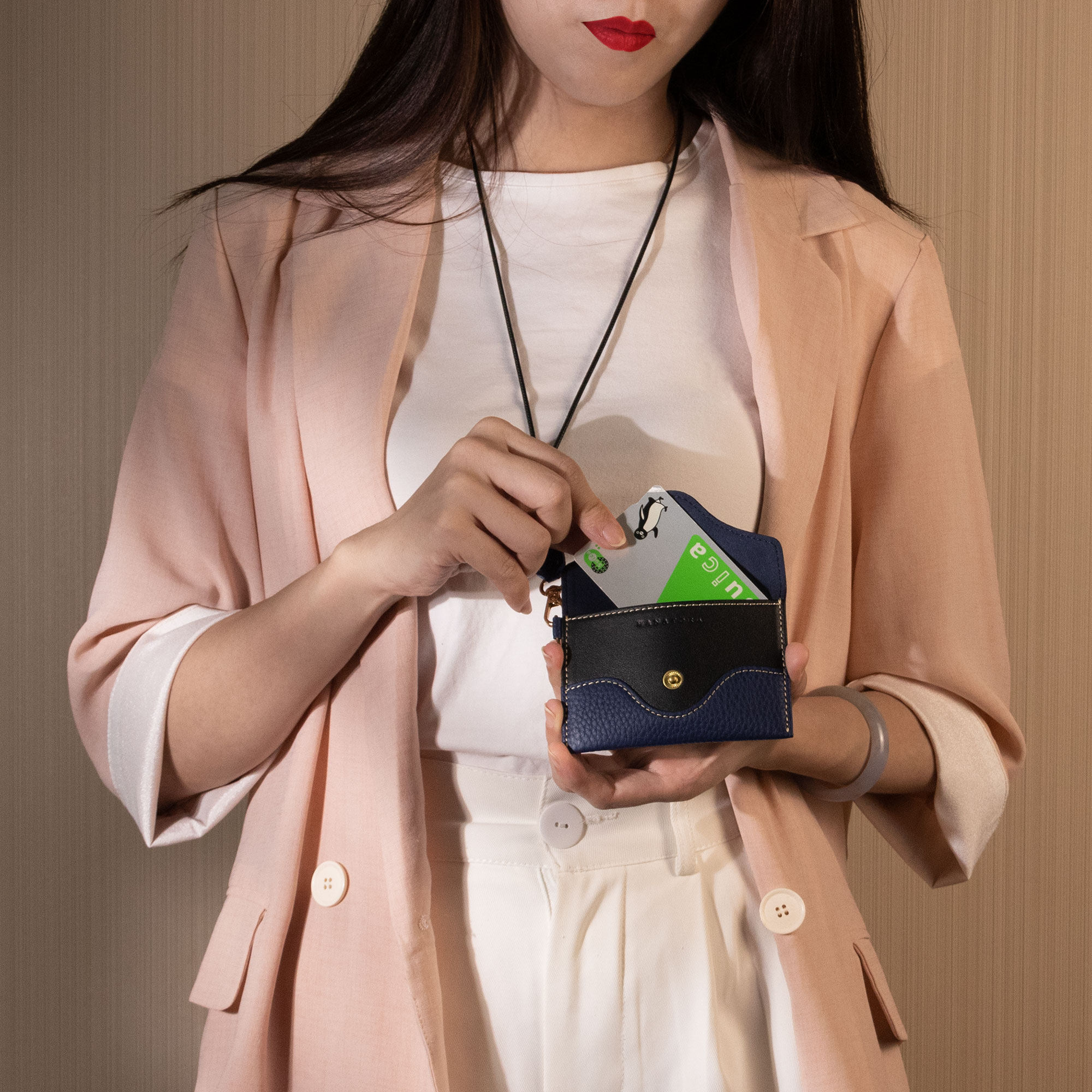 HANATORA花虎真皮卡包女士简约便捷挂脖名片夹证件随身收纳小包