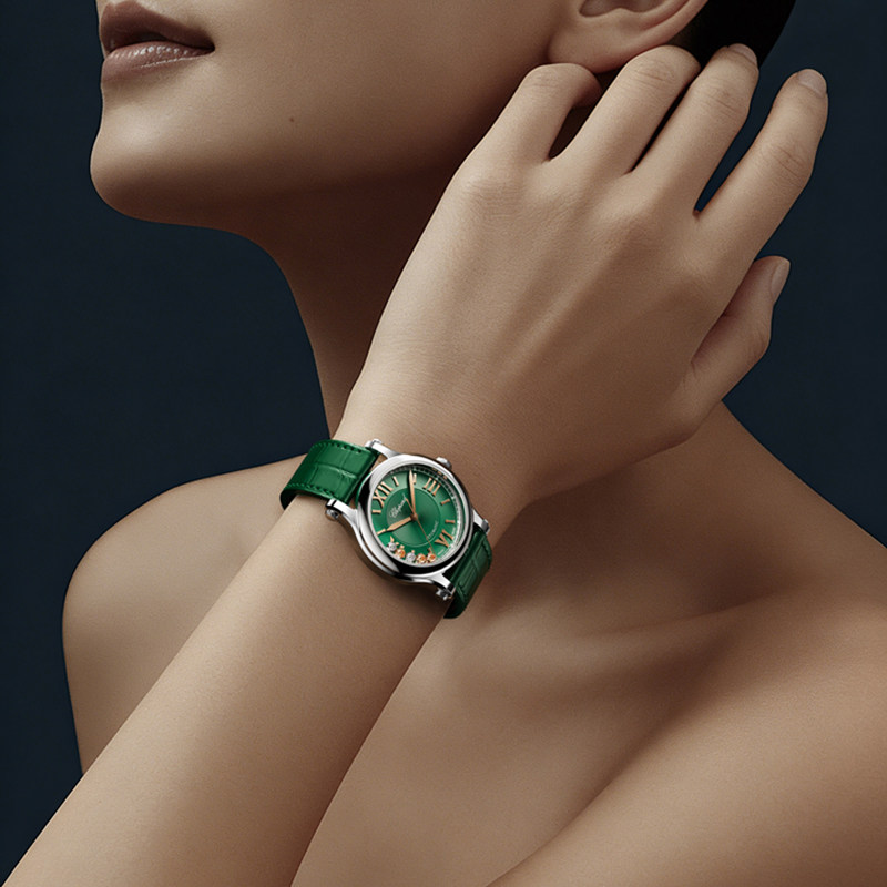 天猫限量Chopard萧邦绿进斗金机械女表生日礼物送女友 明星同款由
