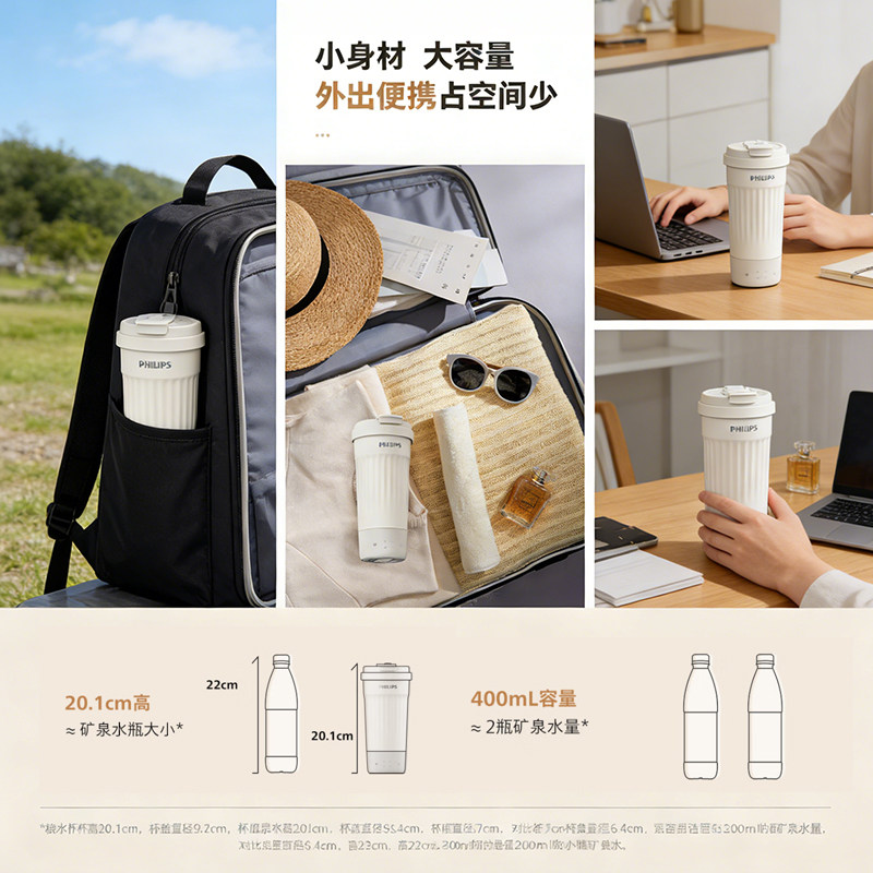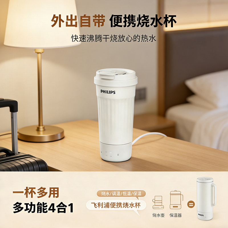 为您提供商品烧水壶保温杯触控出差旅行户外团购 飞利浦烧水杯电热杯小型便携式的详细介绍,