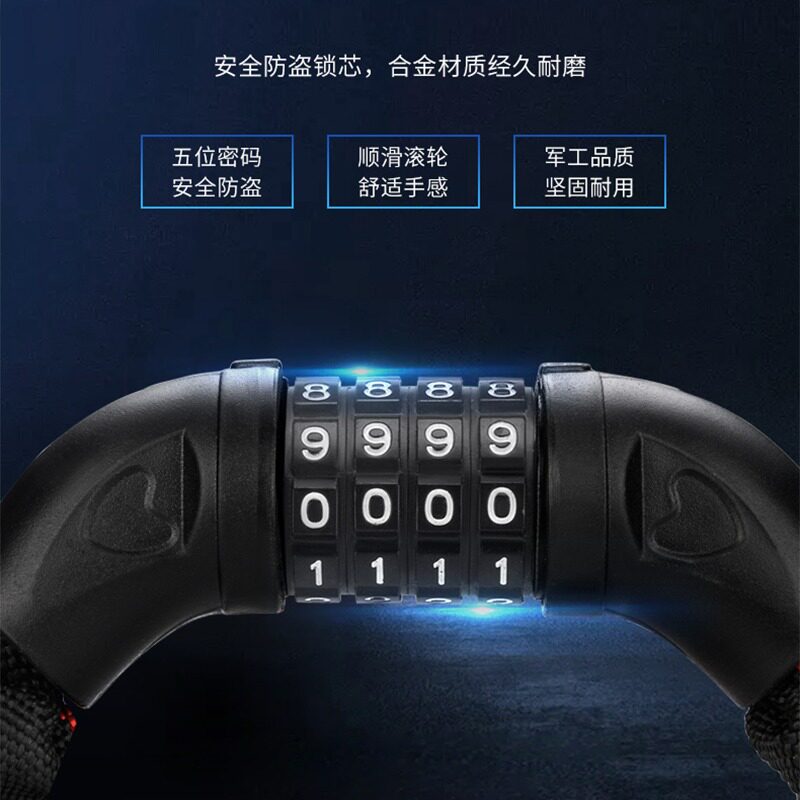 自行车密码 山地车链条电动锁钢缆碟刹锁通用 锁抗剪防盗便携式