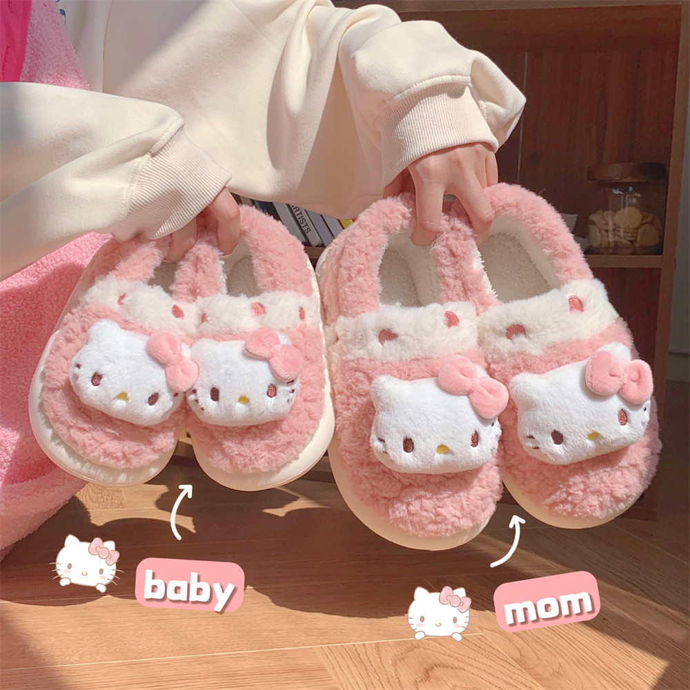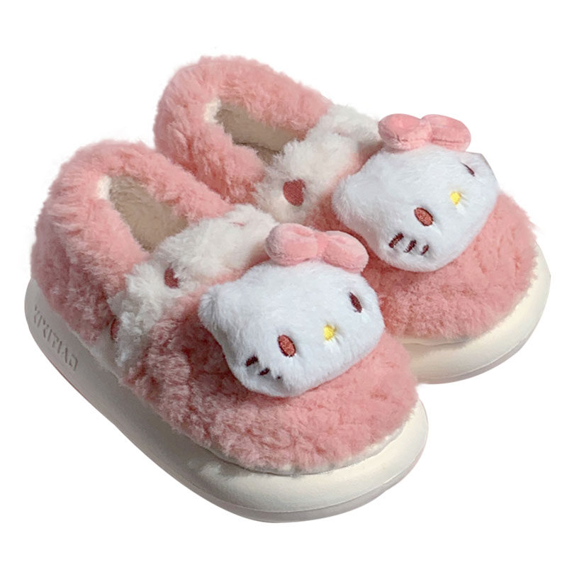 女童冬季 细细条 正版 KT猫凯蒂猫儿童棉拖鞋 公主宝宝粉色亲子棉鞋