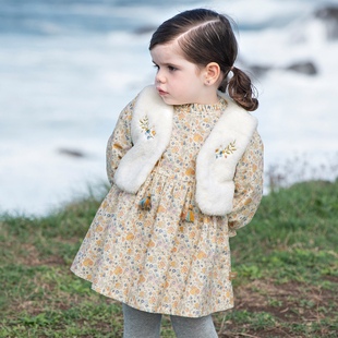 戴维贝拉女童连衣裙冬装 儿童毛绒马甲裙子两件套宝宝加绒衣服童装