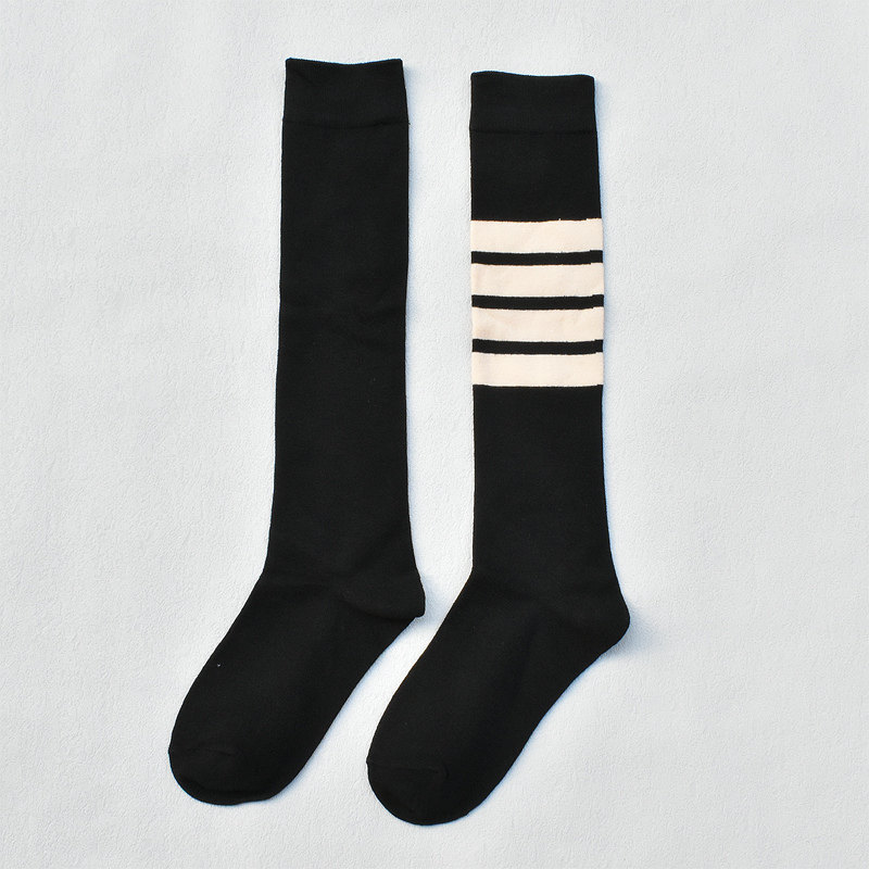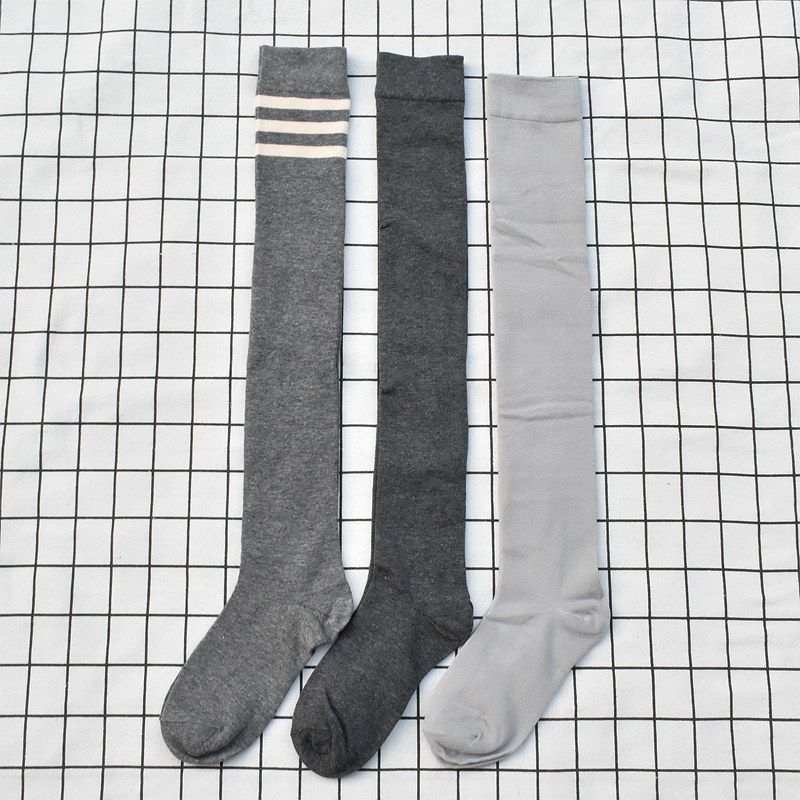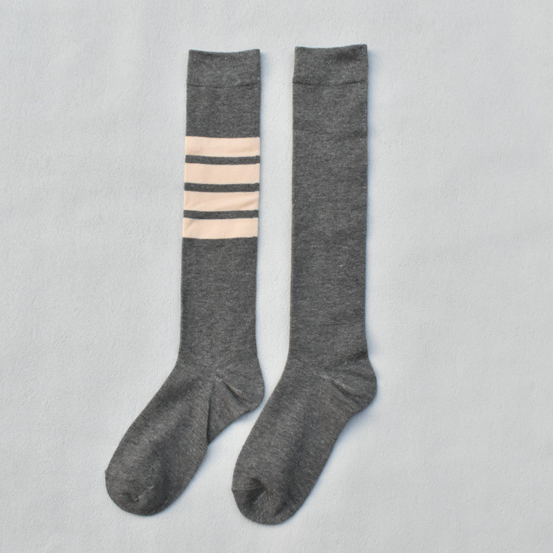 棉混纺 女士小腿袜TB灰色条纹长筒袜中筒袜过膝袜学院风女袜薄款